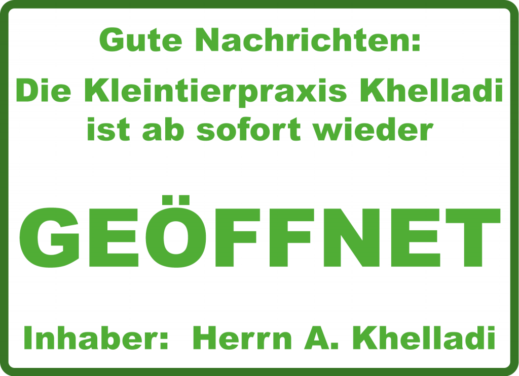 Herr Khelladi freut sich sehr darauf, Sie und Ihre Tiere wieder willkommen zu heißen – mit der gewohnten Herzlichkeit, Kompetenz und Tierliebe, die viele von Ihnen so sehr geschätzt haben.